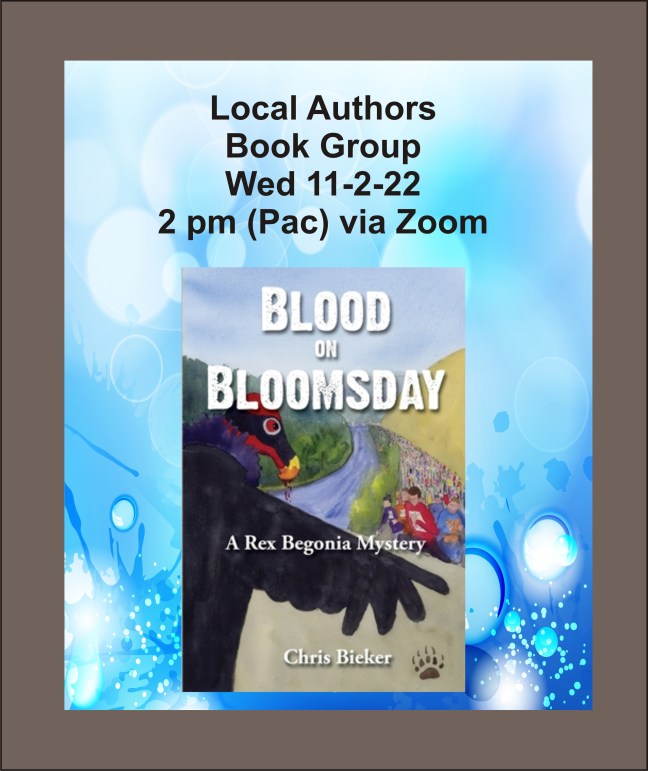 Our 2nd get-together for the Local Authors Book Group will feature local author Chris Bieker who will share the 2nd book in her Rex Begonia series – Blood on Bloomsday. The characters are a little tongue-in-cheek and this is a fun but also good mystery read. Hope you can join us on Wed Nov. 2nd at 2 pm. And don’t forget to ask for your 15% discount when purchasing your copy! For details, visit the event page on Auntie’s website: https://www.auntiesbooks.com/event/local-authors-book-group-zoom