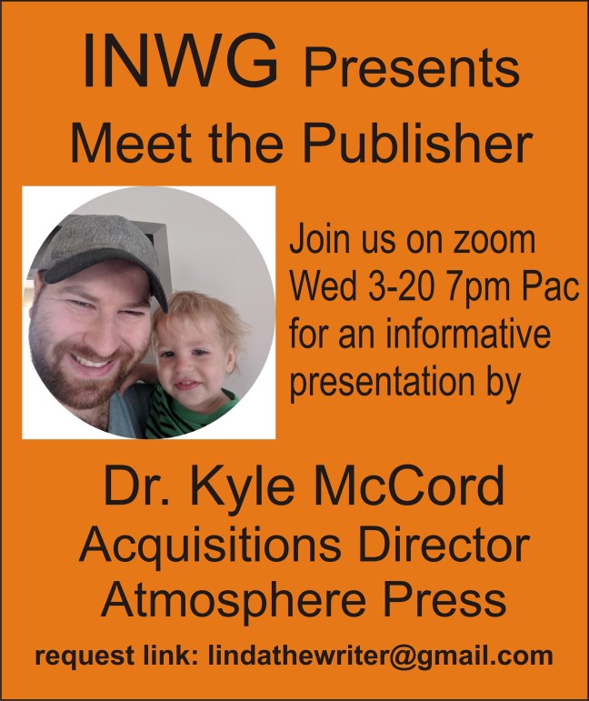 This event will be held via zoom at 2 pm Pacific Time. The link may be requested from Linda at lindathewriter@gmail.com.